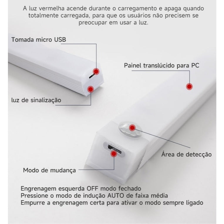 🌟 Luz LED Inteligente com Sensor de Movimento, Fixação Magnética e Design Moderno
