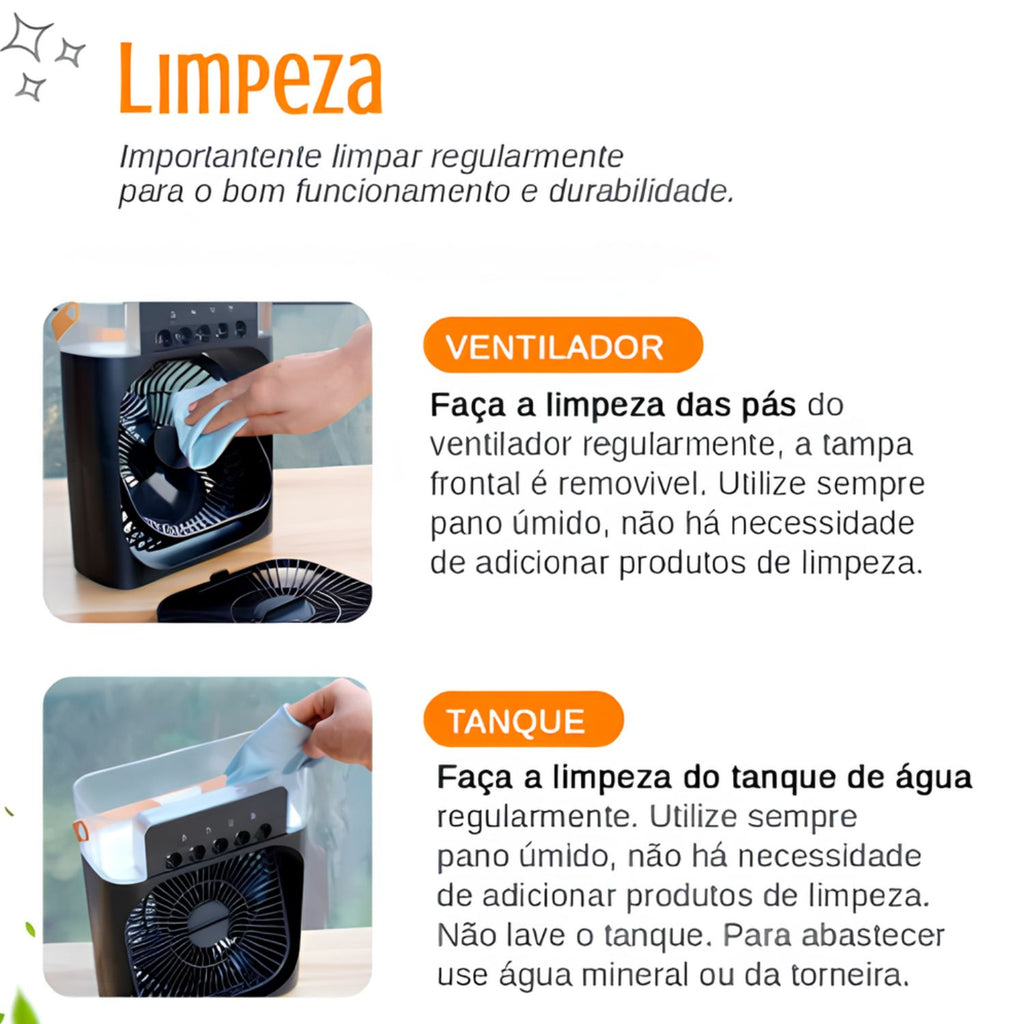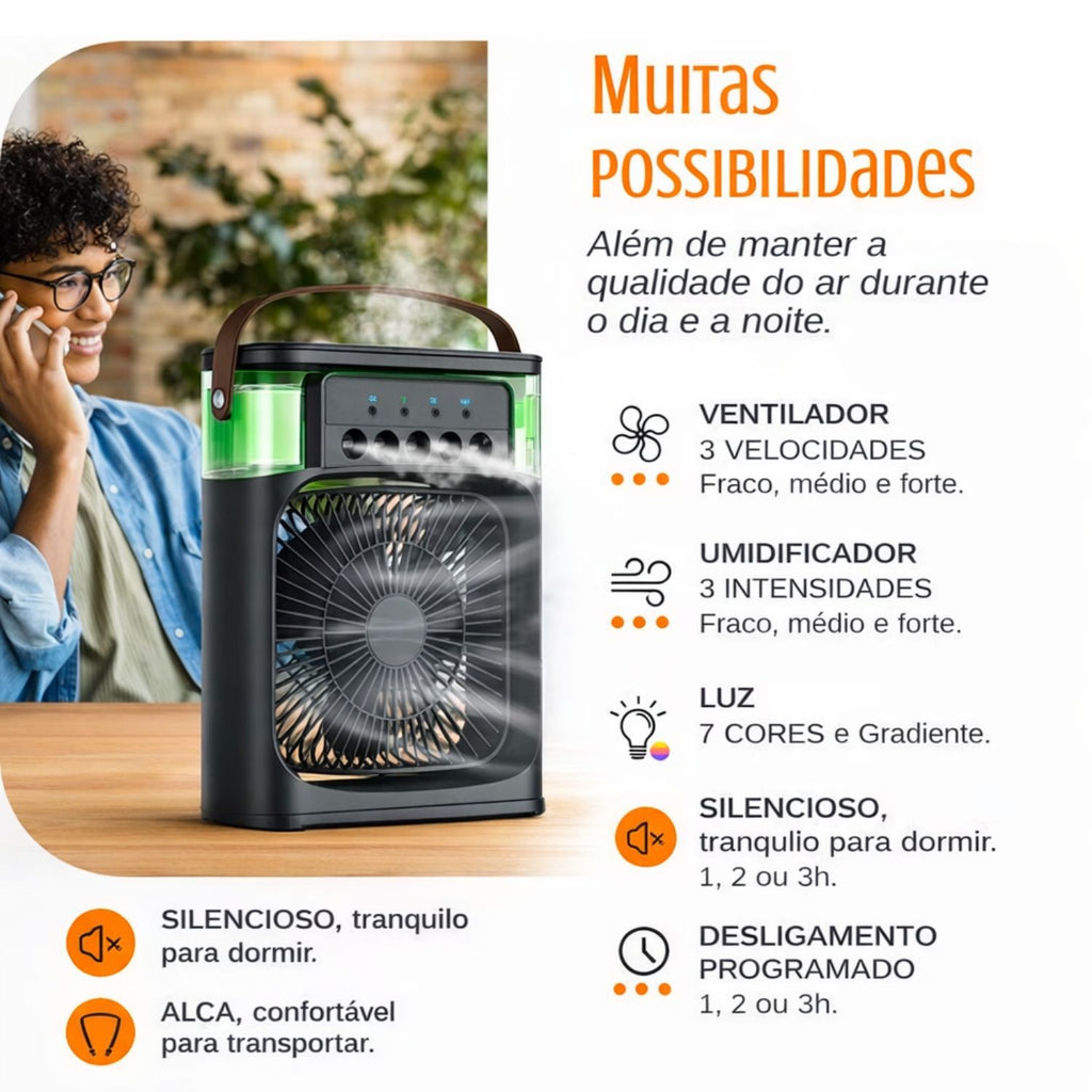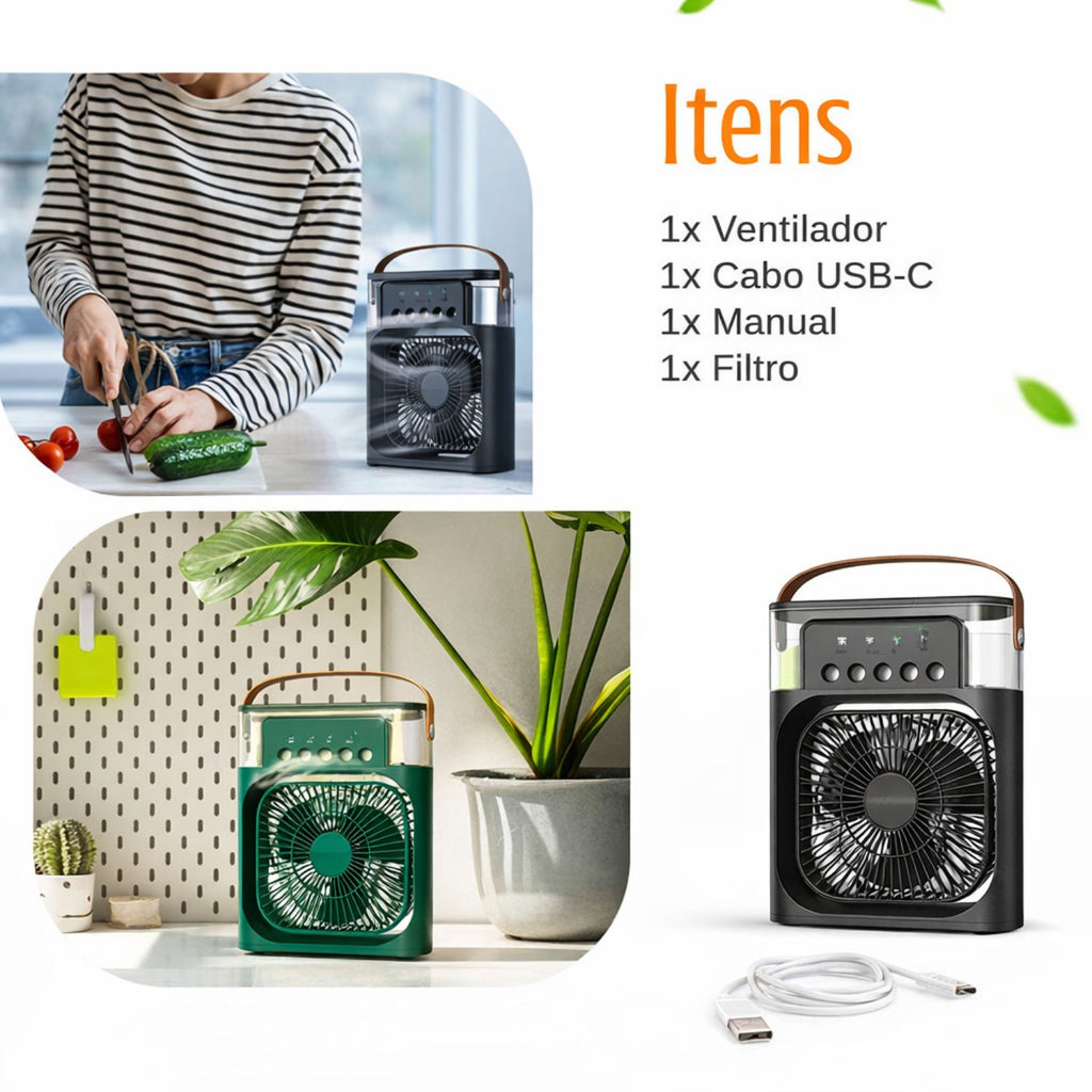 - 1x Mini Ventilador Umidificador de Ar